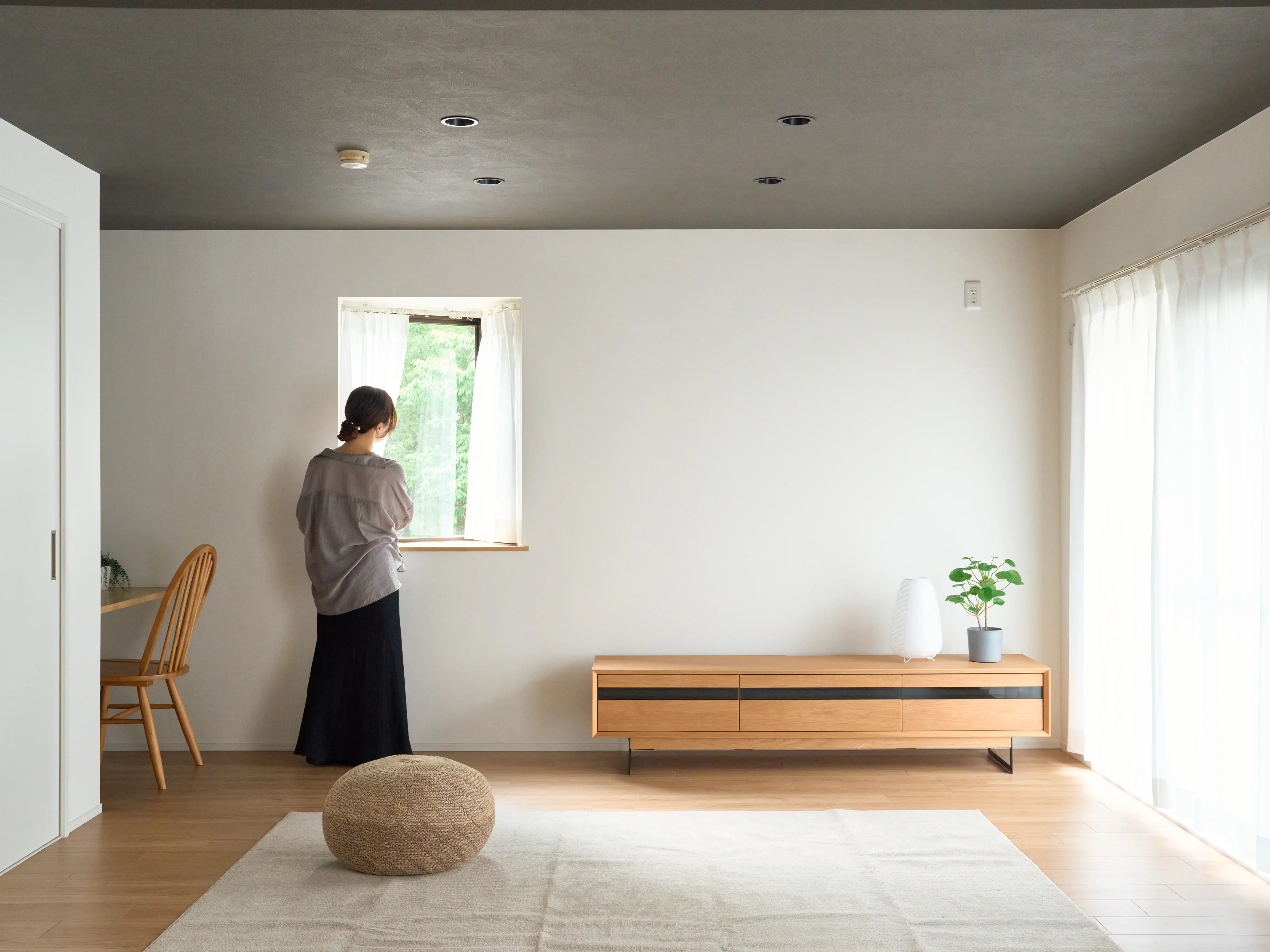 そんな自然のエネルギーを取り込むパッシブな住まいで、ゆったりと温かい時間を過ごす家族をイメージして計画しました。