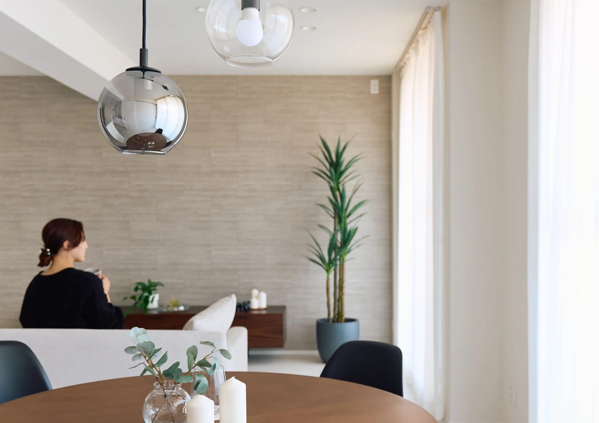 また、目線の高さにペンダントライトを配置することで、光がテーブルに広がりやすくなります。