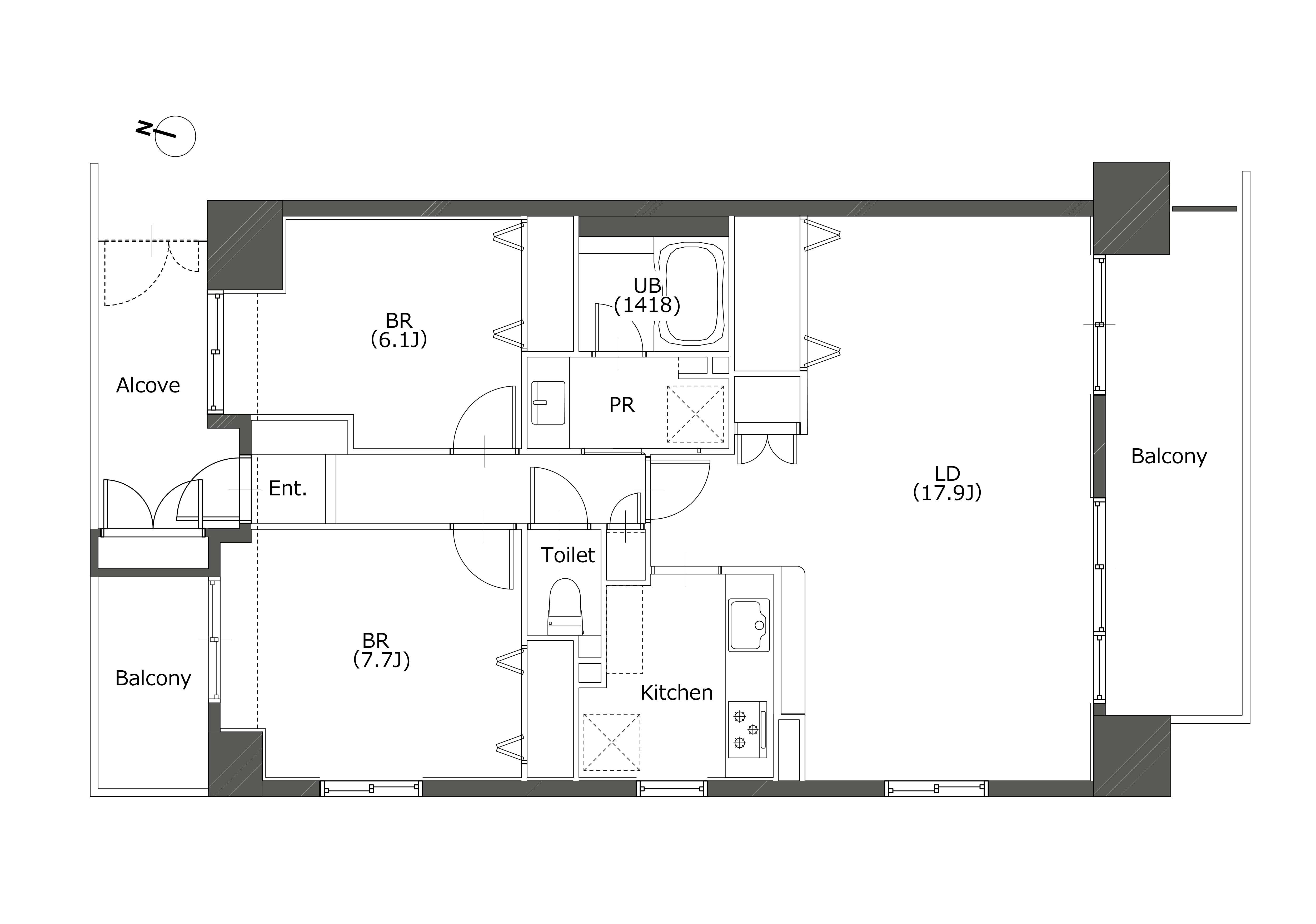 地上14階の最上階の眺望を、お部屋の一部として取り込んだような、その景色までが暮らしの一コマとなるようなリノベーションを目指しました。