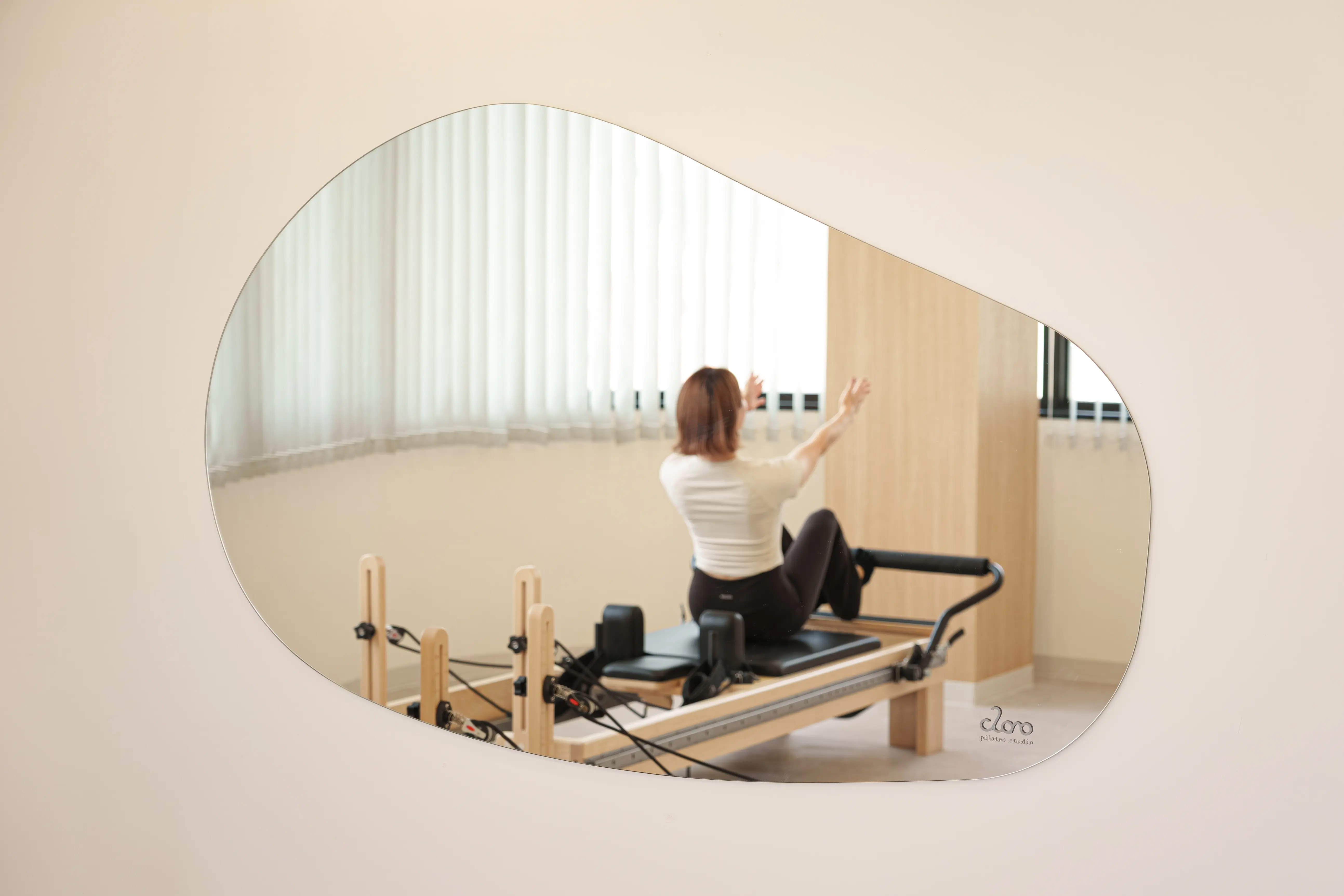 ピラティスでは、体のバランスや状態をミラーでチェックしながらトレーニングを行うそうです。