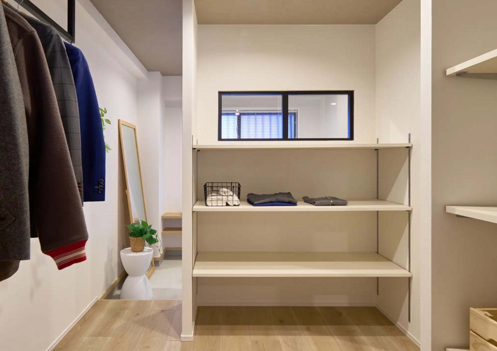 洋室との間仕切壁には室内窓を設けて、繋がり感を残しました。