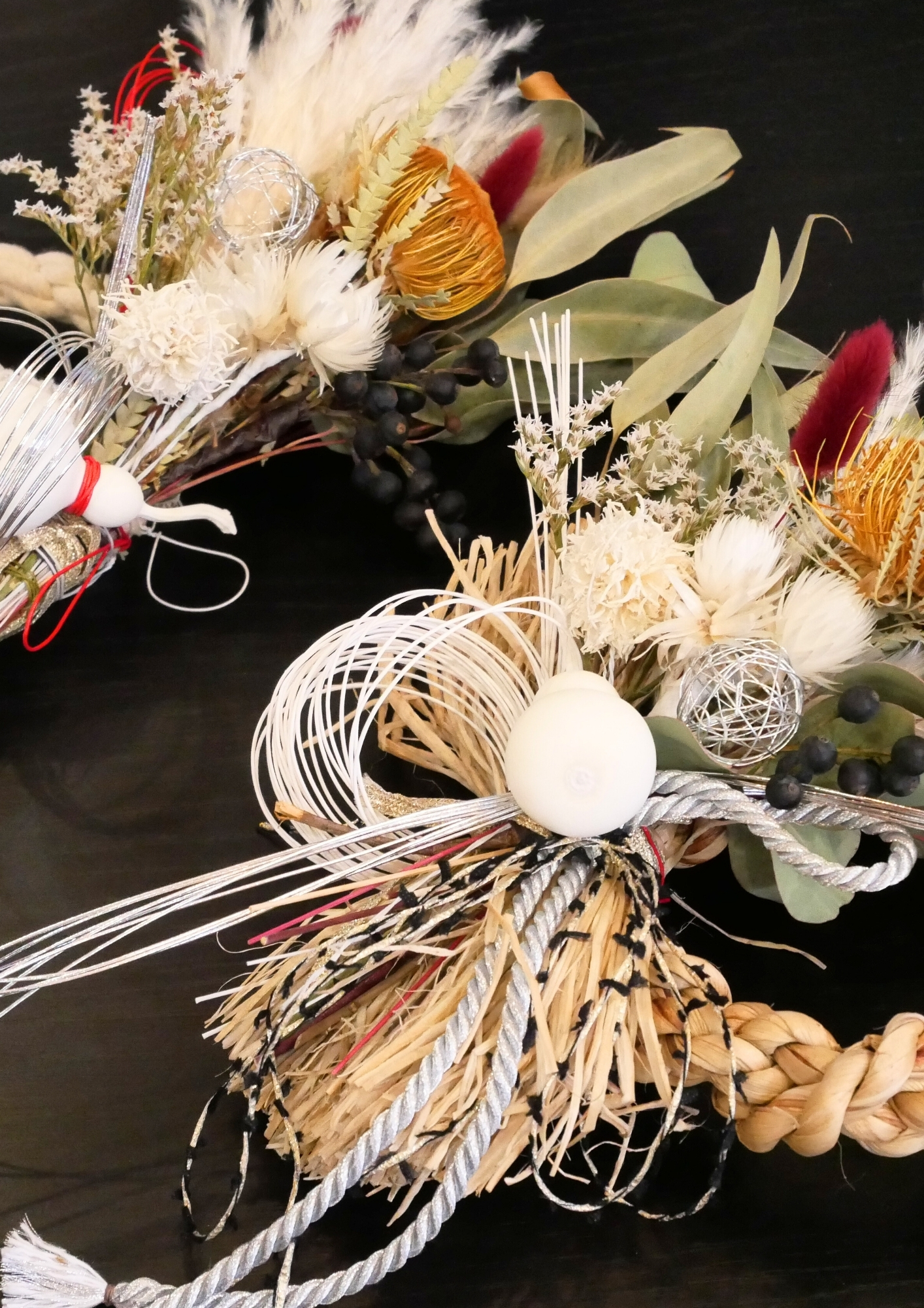 同じ素材でも、作る方それぞれに個性が出るので、さまざまなスタイルのしめ縄が完成しました✨