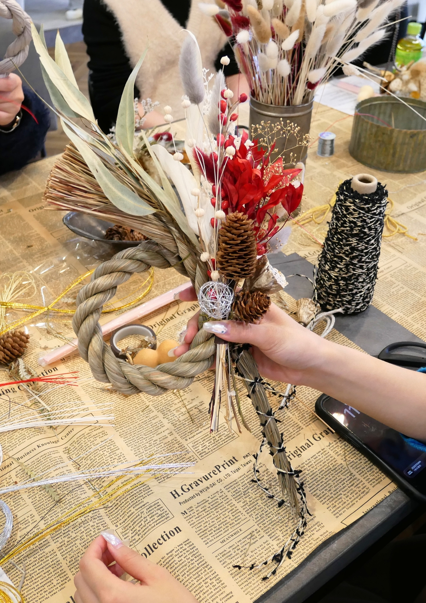 しめ縄との組み合わせに皆さま悩みながらも楽しそうに制作されていました🌿