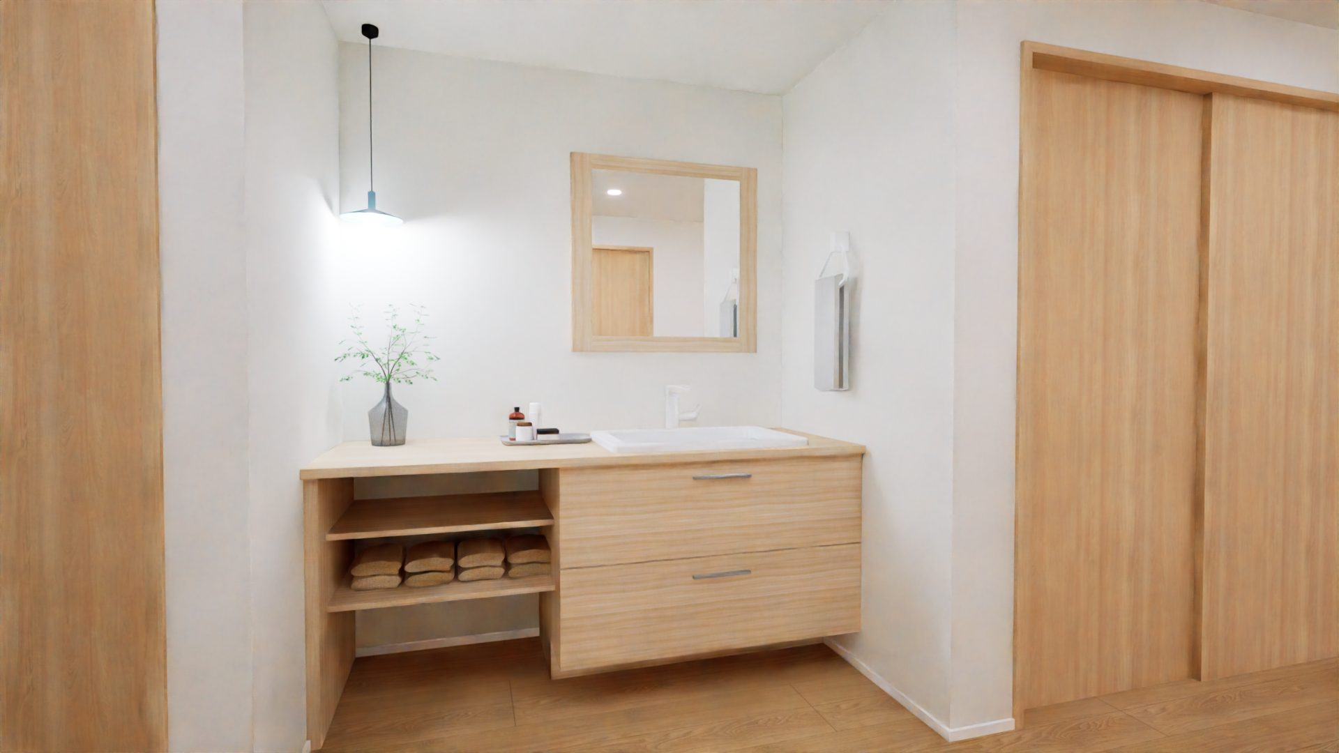 快適に過ごすことの先に待ち受けているのはメンテナンスです。どれだけ快適でもメンテナンスに手間がかかったり費用が発生してしまっては本末転倒、、、今回はそんなメンテナンスにも着目したプランになっています。ごはんをこぼしてしまった油汚れや、尿などのトイレ汚れ、なにかと汚れる床に採用したのは【LIXILの耐水UDわん】です。脱衣室やトイレにはSangetsuの【わんにゃん消臭フロア】を採用しました。汚れが付いても難なく取り除けることでより快適な空間に。☝🏻