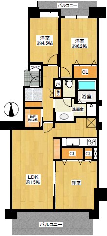 | 専有面積 | 73.95㎡(壁芯) | バルコニー面積 | 15.88㎡ |